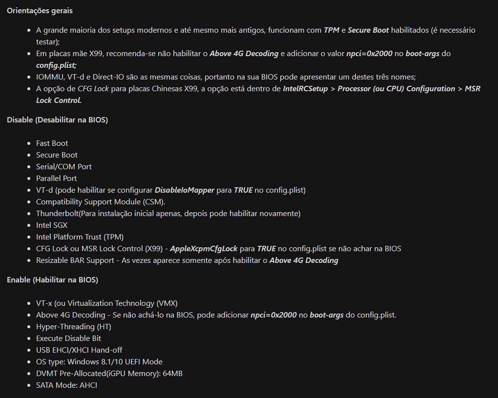 villa / DEV E PROGRAMAÇAO / Como criar e instalar um Hackintosh Profissional 2023 - Grabriel Luchina / 3. Módulo 3 - Configurações de BIOS / Informações