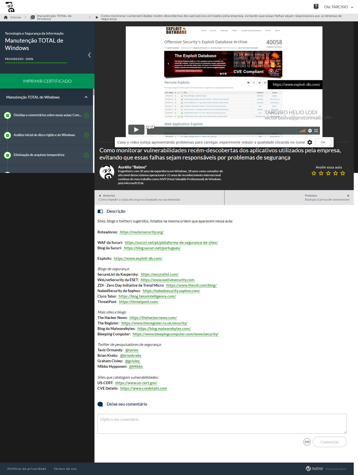 villa / PROFISSIONALIZANTES / BABOO - Manutenção TOTAL de Windows / 47 - Como monitorar vulnerabilidades recém-descobertas dos aplicativos utilizados pela empresa, evitando que essas falhas sejam responsáveis por problemas de segurança