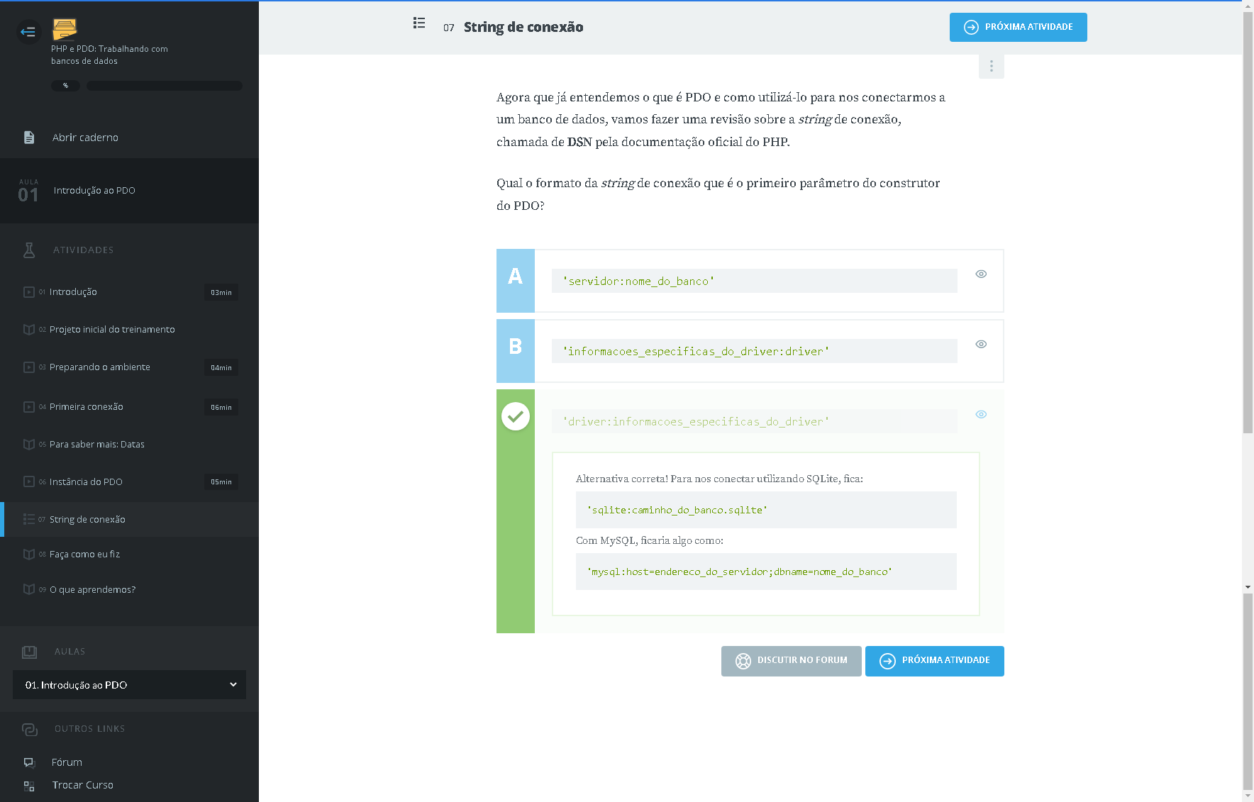 villa / [PACK] ALURA / Alura - Formação PHP / 08. PHP e PDO - Trabalhando com bancos de dados / 01. Introdução ao PDO / Exercícios