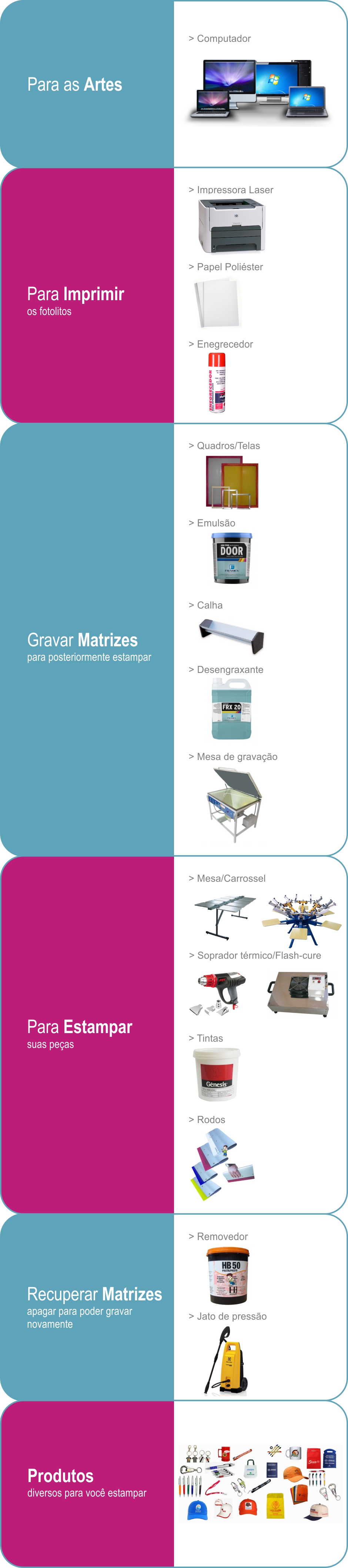 villa / DESIGNER - EDIÇÃO & FOTOGRAFIA / Design de Estampas - Marcos A. Lang / Módulo 6 (Serigrafia) / 15. Material necessário para começar